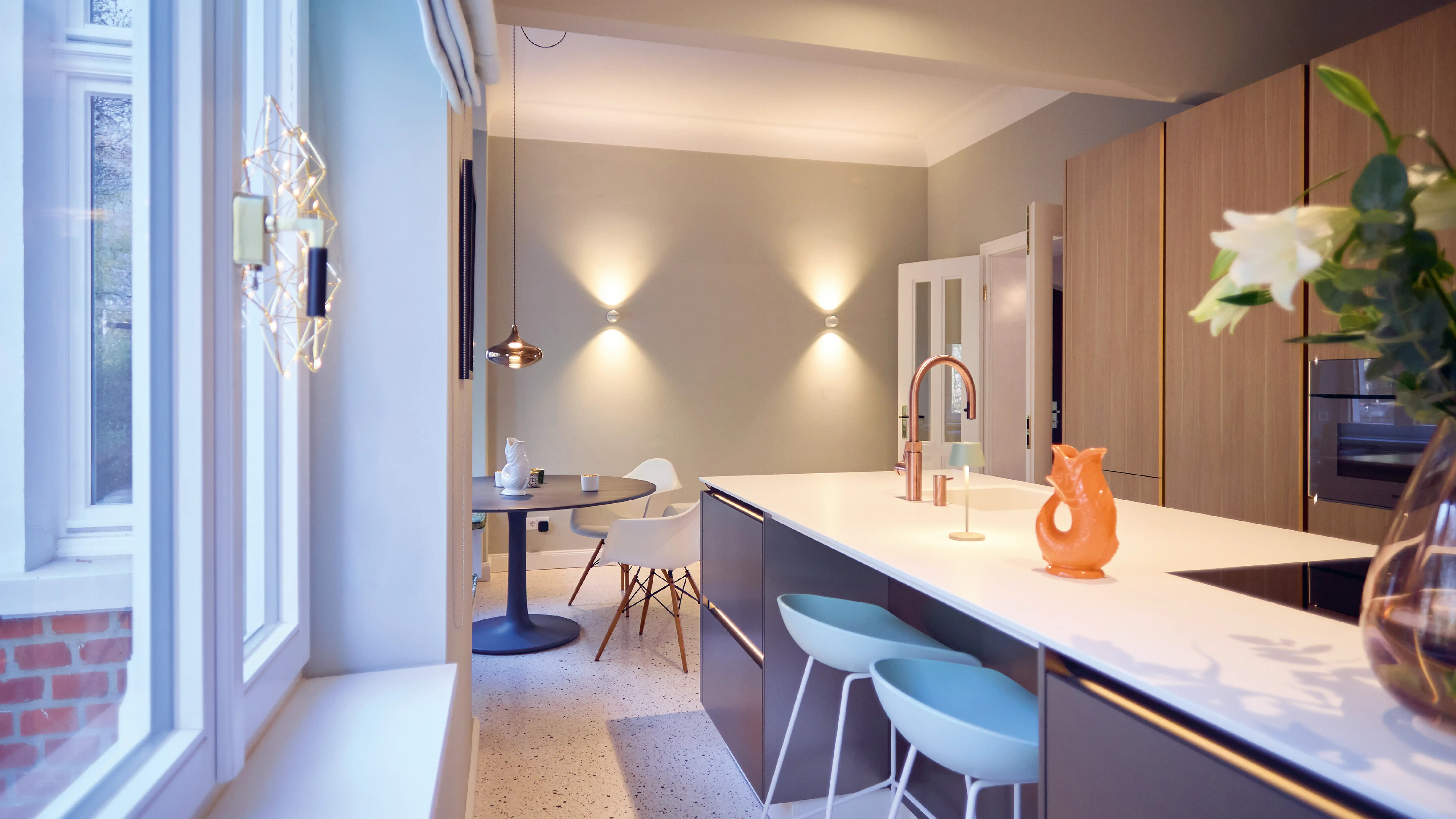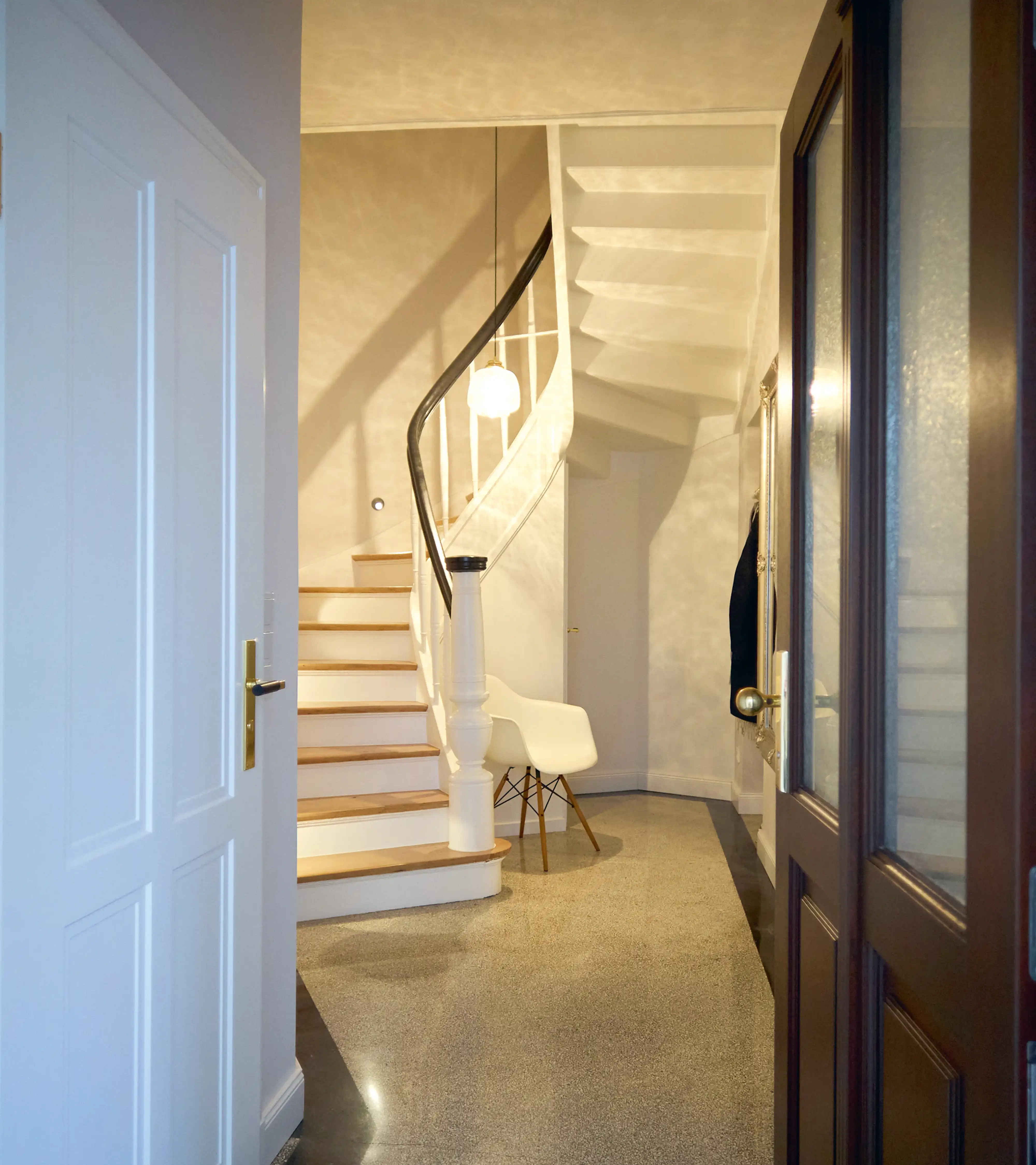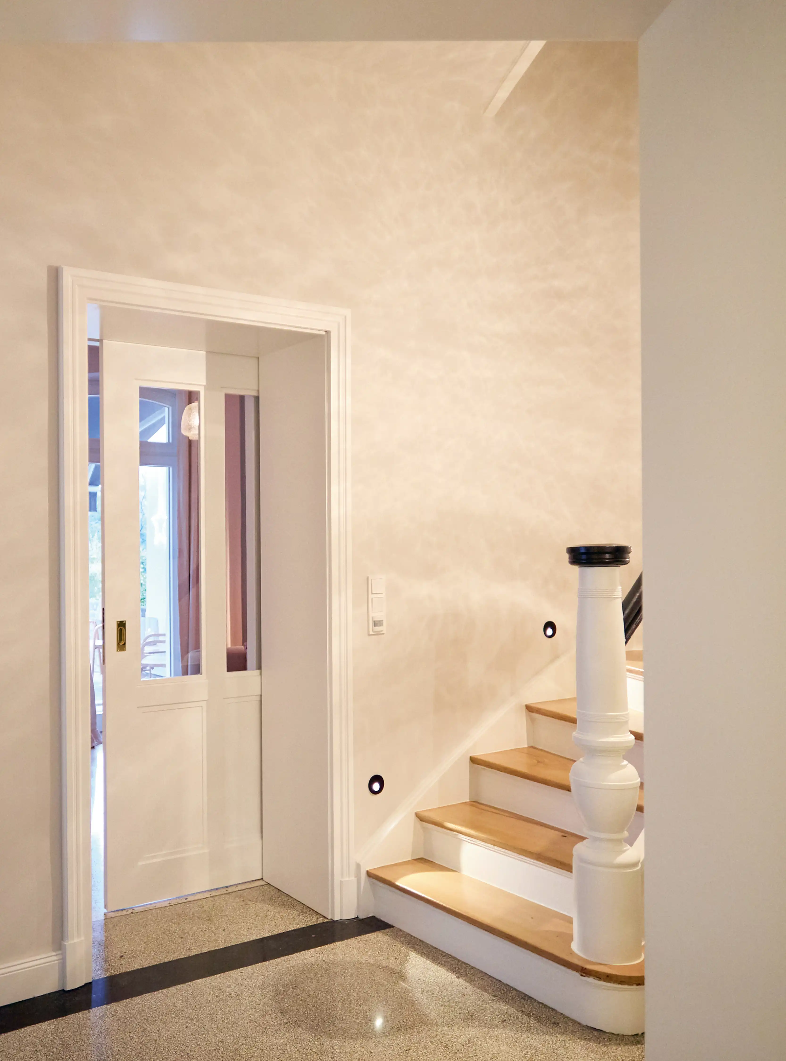 Der wunderschöne Altbau ist Teil eines Dreierensembles, welches im Jahr 1908 durch die Firma Caspar Thywissen für die damaligen Angestellten erbaut wurde. Ein Haus mit recht schwierigem Grundriss und teils sehr schlechter Bausubstanz. Aber auch mit enorm viel Potential. Und genau dieses sah die Bauherrin und entschied sich für eine Grundsanierung mit Unterstützung der erfahrenen Architektin und Innenarchitektin Doris Annen-Feld.