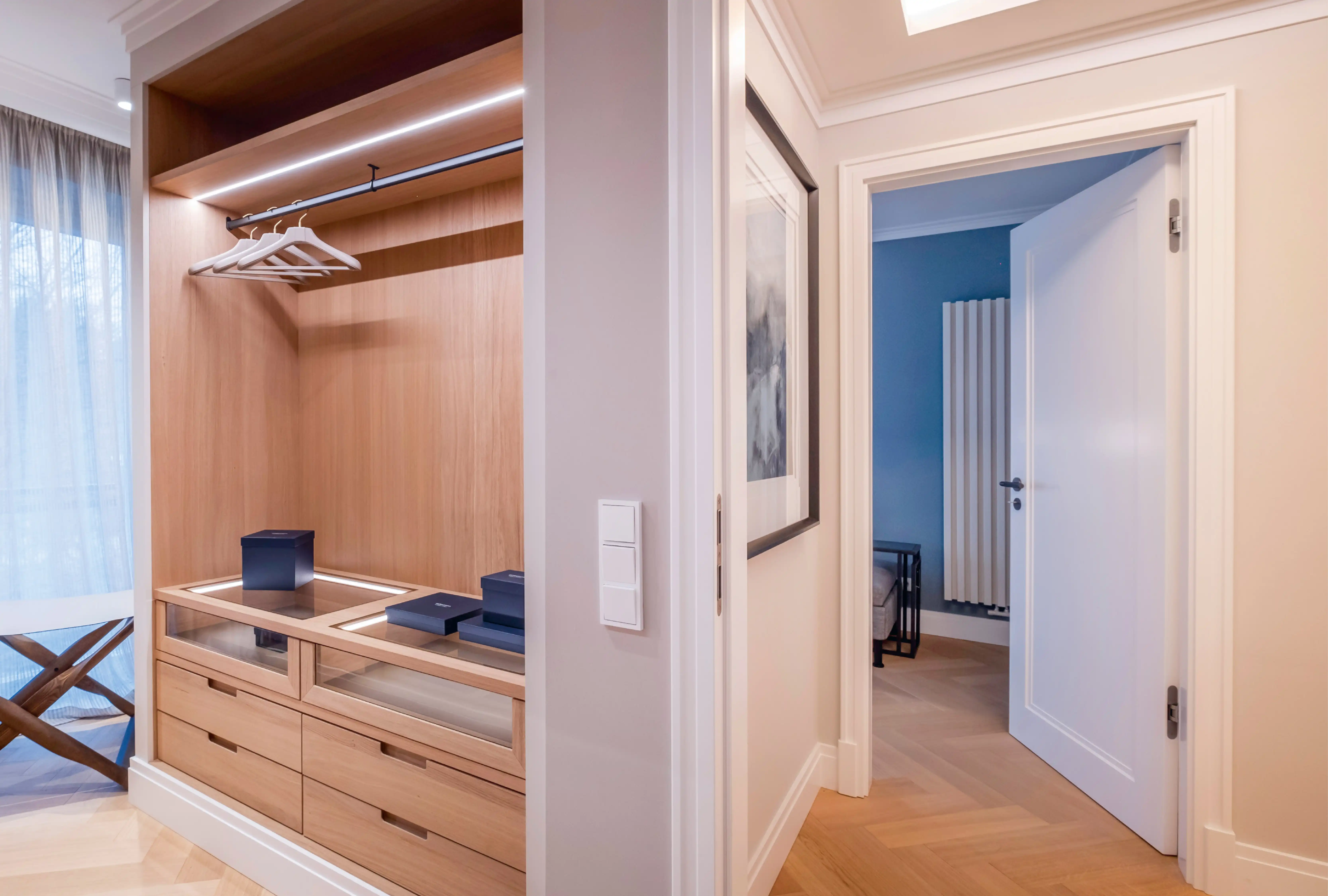Stil und Qualität stehen natürlich bei der Auswahl von Produkten und Materialien für den Designer im Vordergrund. Ein Grund mehr sich für Türen von Brüchert + Kärner zu entscheiden. Mit wieviel Kreativität und Leidenschaft für Design Simon arbeitet, zeigt sich u.a. bei den Schönen Türen, die das Schlafzimmer vom Bad en Suite trennen: die Innentüren der Serie Klassiker wurden Schranktüren ähnlich mit Magneten versehen… tolle Idee!