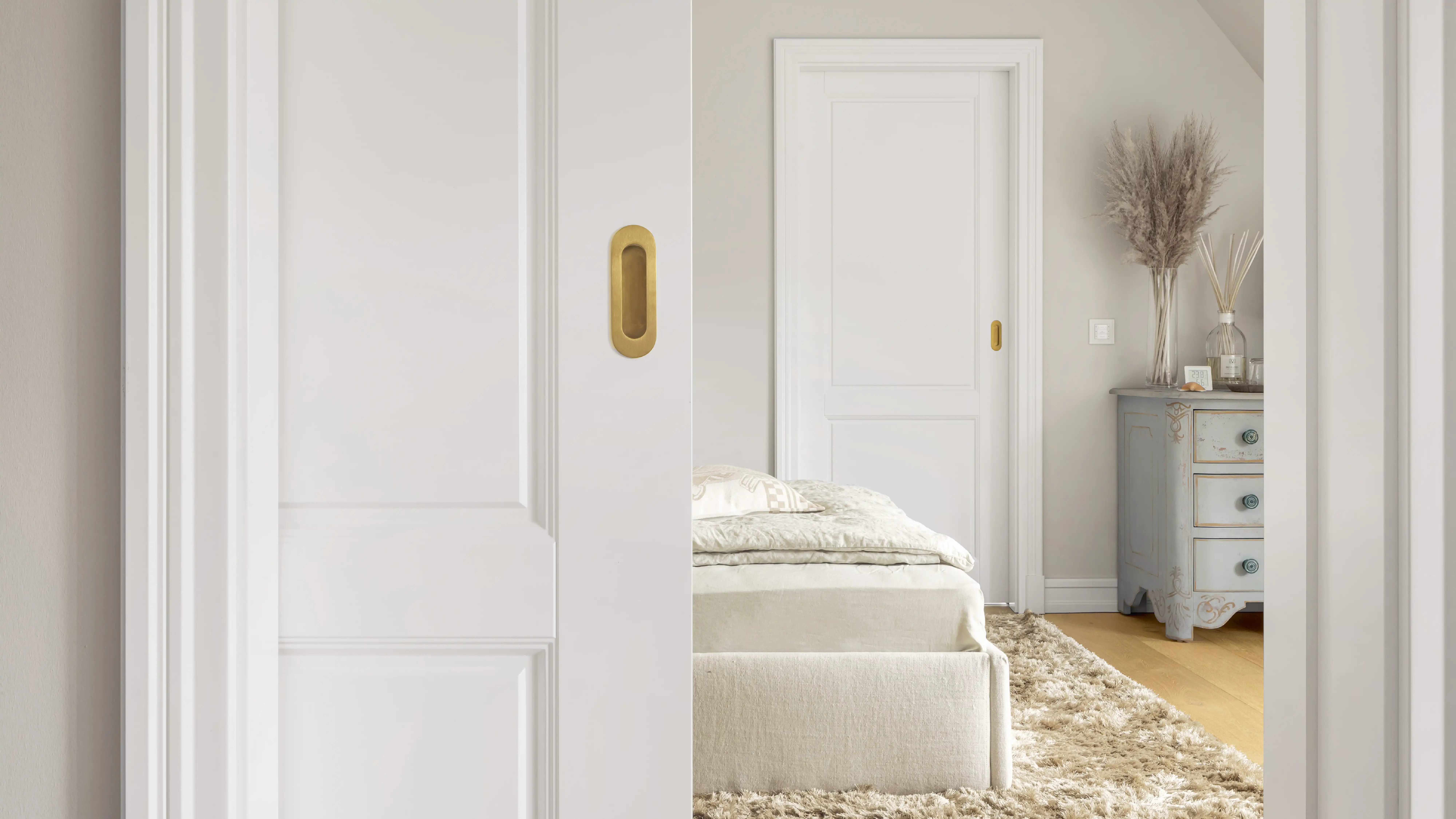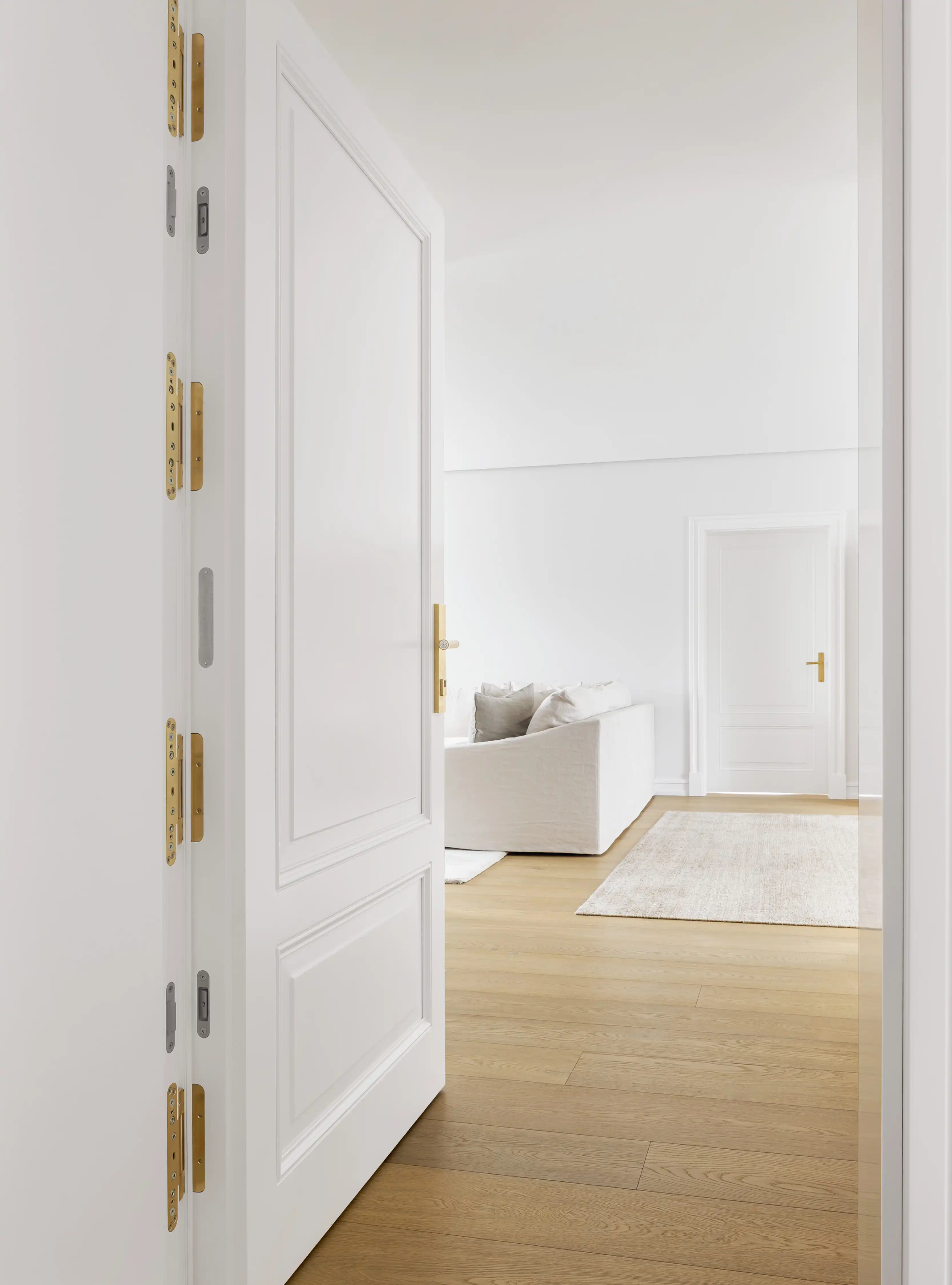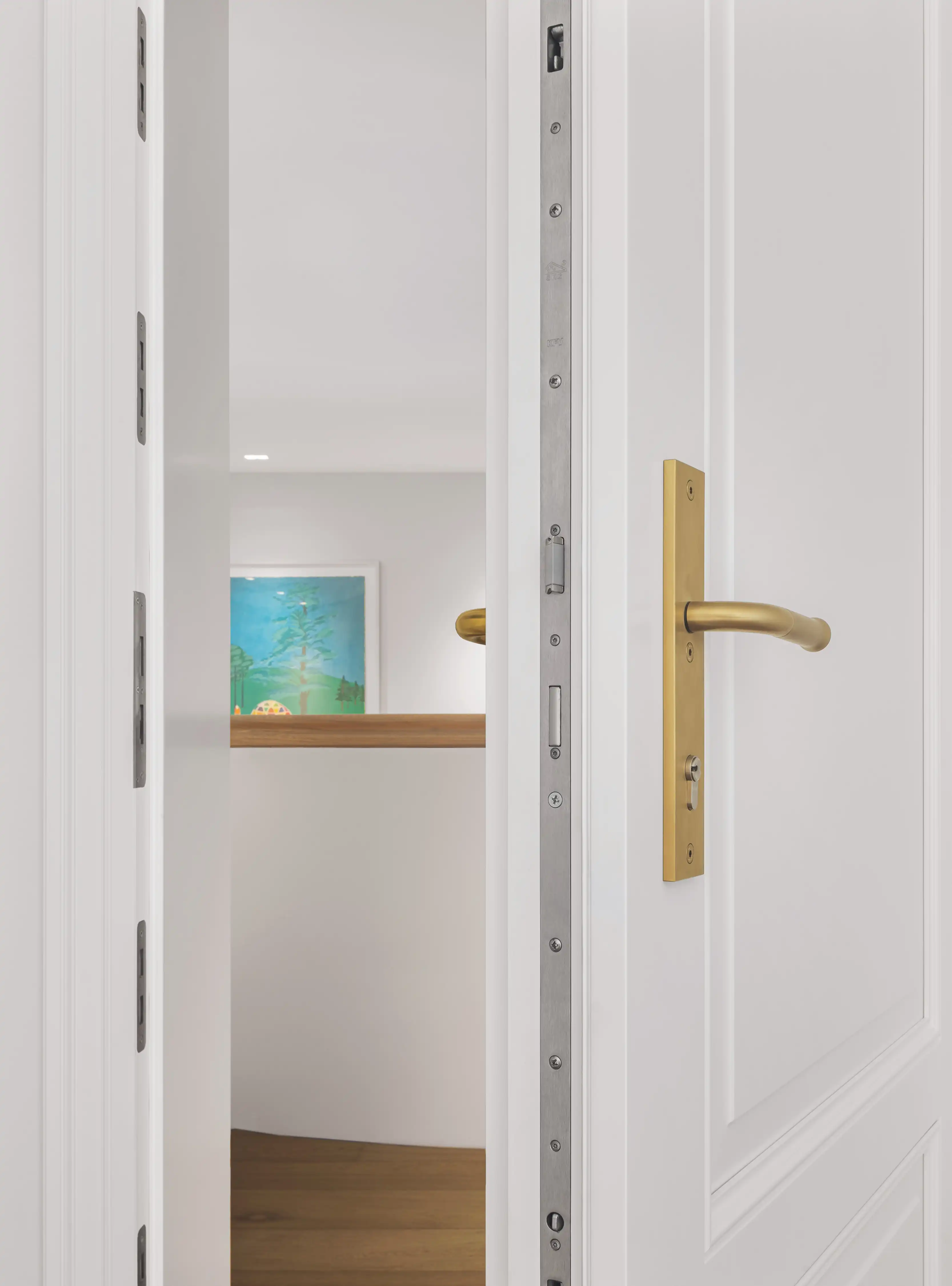 Ein besonderer Hinweis gilt der Sicherheitstür, die die privaten Räume von dem Wohnbereich trennt und die gesamte Technik in der klassischen Optik der Tür versteckt.