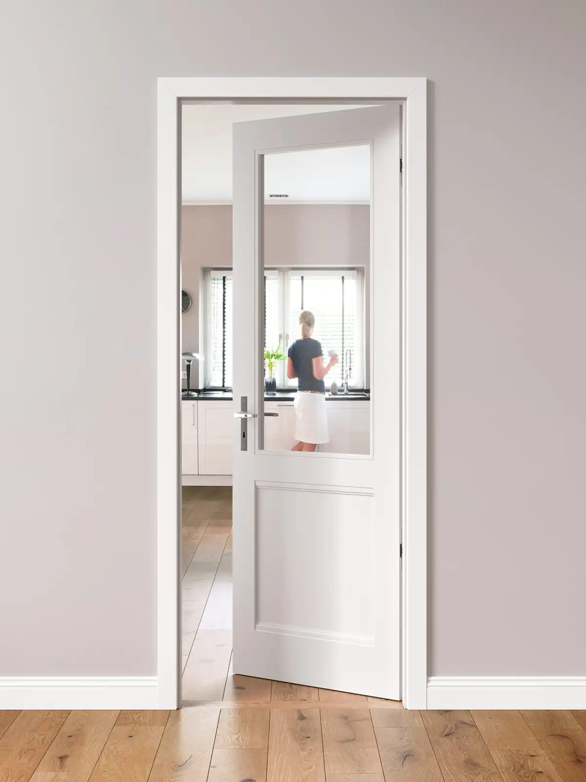 S.04 Zarge S 70, Farbe Weiß RAL 9016, Drücker BK.10, Fußleiste F.2